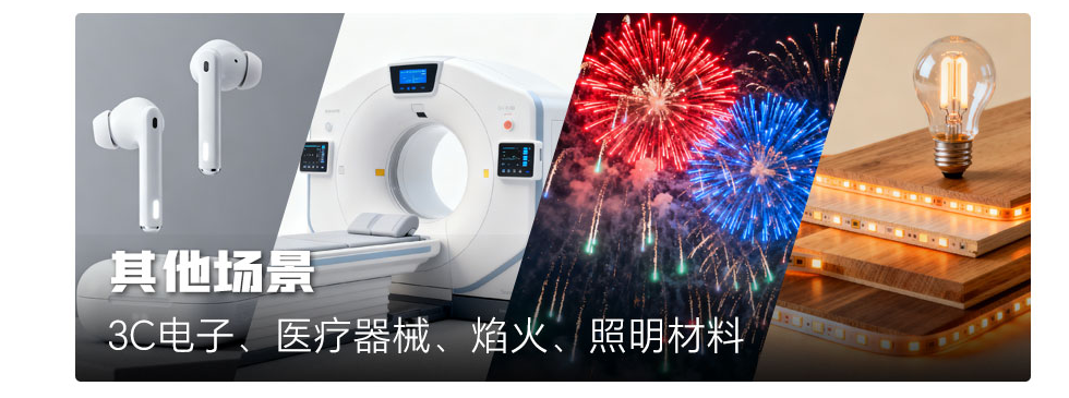 其他場景:3C電子、醫療器械、焰火、照明材料